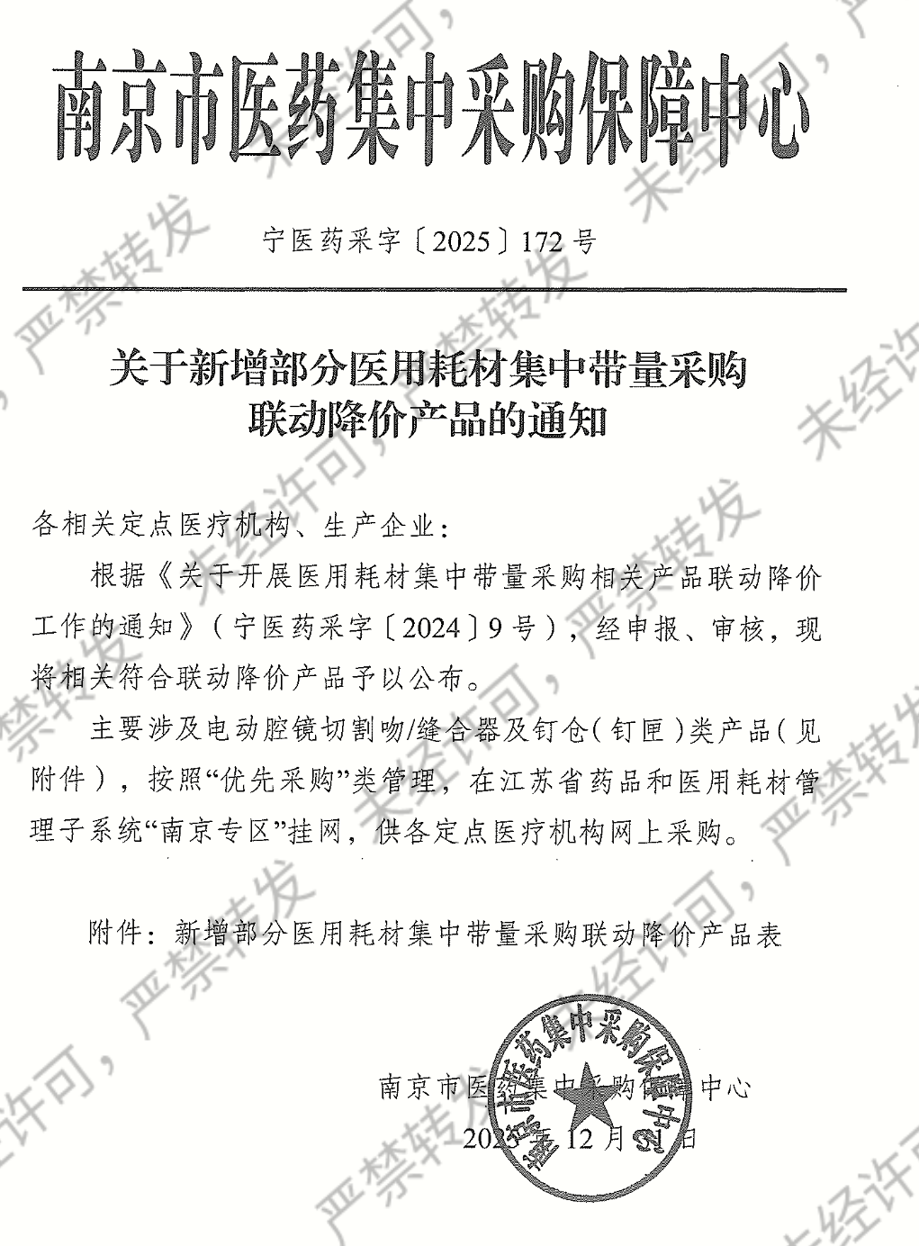寧醫(yī)藥采字〔2025〕172號—關于新增部分醫(yī)用耗材集中帶量采購聯(lián)動降價產品的通知(第二十五批)