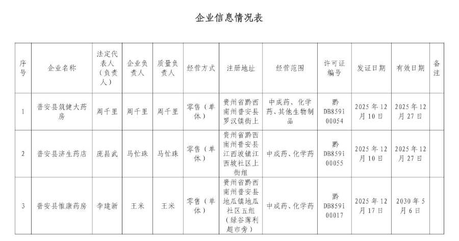 普安縣市場(chǎng)監(jiān)督管理局關(guān)于變更藥品經(jīng)營(yíng)許可證的通告(2025年第27號(hào))